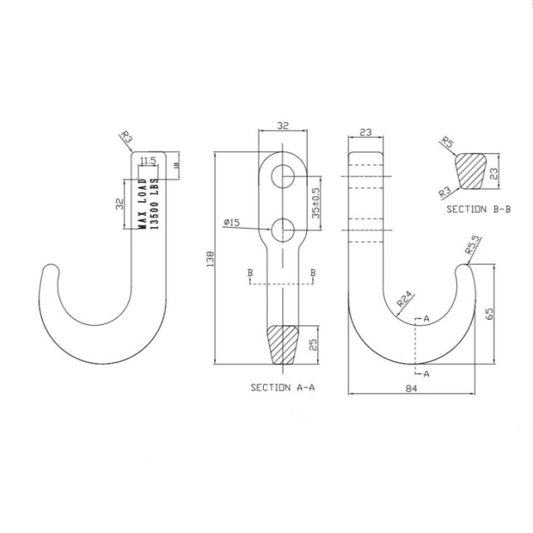 ThisJ Hooks Towing este construit din oțel forjat de înaltă rezistență, tratat la căldură, pentru o rezistență maximă. Este evaluat pentru 10.000 lbs. (limitat la structura de montare)