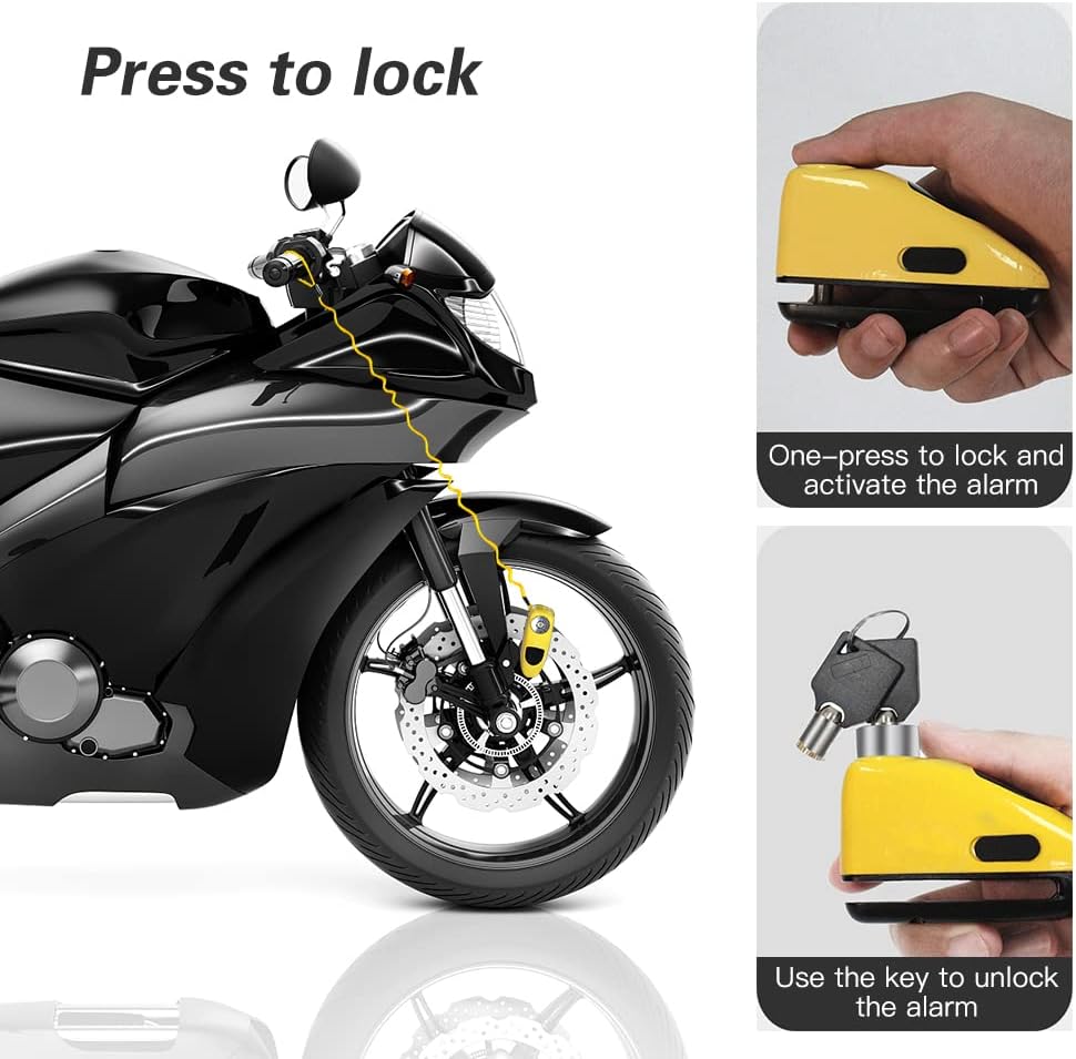 · Alarmă cu deciblei ridicat: alarma de blocare a discului de frână de motocicletă detectează impactul și mișcarea, asigurând siguranța motocicletei tale. Clasa de alarmă de 110DB poate emite un sunet de alarmă puternică.
