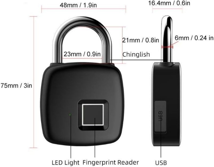 Funcție de detectare a amprentelor digitale】: Acest lacăt folosește amprente pentru a debloca. Comoditatea cheii fără cheie vă poate ajuta să scăpați de frica de a pierde cheia sau de a uita combinația de parole, de a face activarea amprentei dvs. mai eficiente și mai confortabile, de a crește securitatea și de a sprijini până la 1 înregistrare a amprentei.
